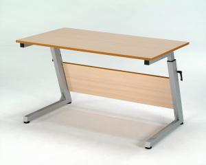 Height adjustable computer table.