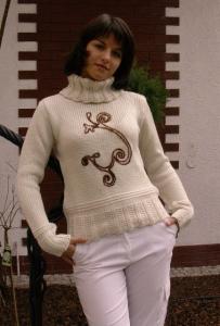 Wykonany z miękkiej, przyjemnej dla ciała przędzy. Wcięty i dopasowany w talii, bardzo kobiecy.