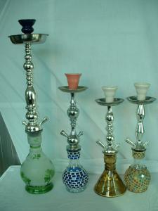 There are 6 different hookah in material, iron, aluminum, jade,ceramic crystal and silver.