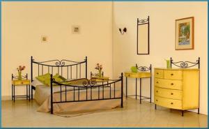 Meble wykonane techniką kowalstawa artystycznego, zdobione różnymi elementaki kutymi.